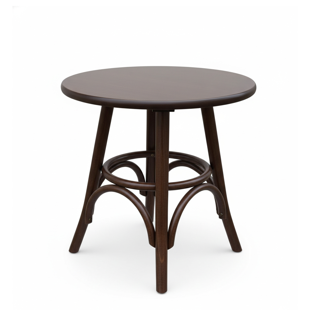 A stylish bistro coffee table featuring a curved beech wood frame and a round veneered MDF top. With its special 50 cm height, this table is perfect for lounge zones, reception areas, or any setup requiring a low and elegant table solution. Available in polyurethane finishes in walnut, mahogany, or wenge shades. Optional square top upon request. Dimensions: Ø 700 mm, H 500 mm.