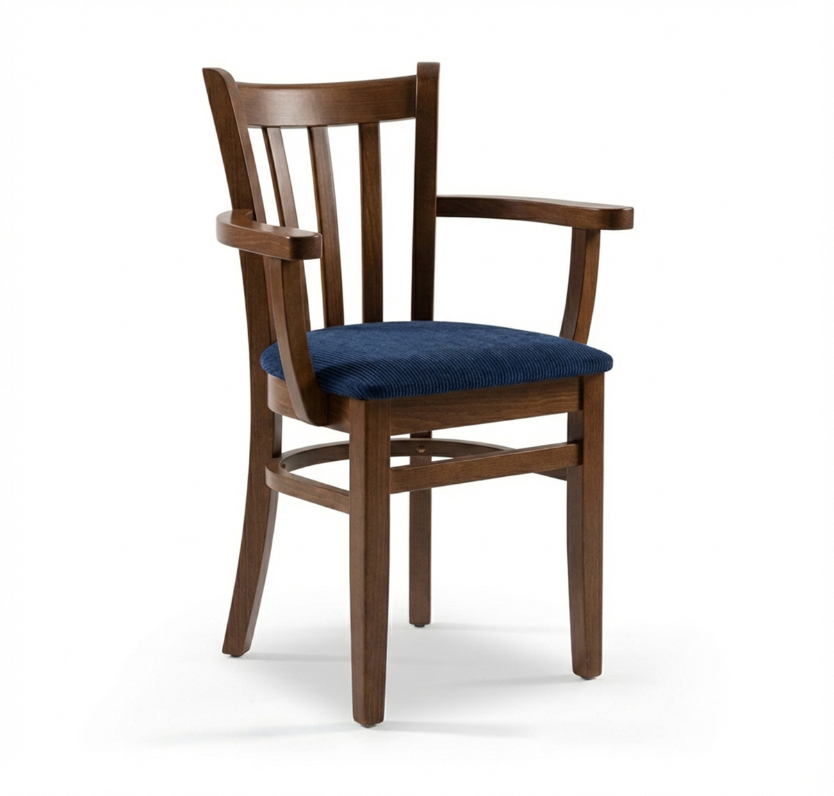 Beech wood dining armchair with armrests, ideal for HORECA spaces (bars, cafés, pubs, restaurants) and a great fit for home interiors.